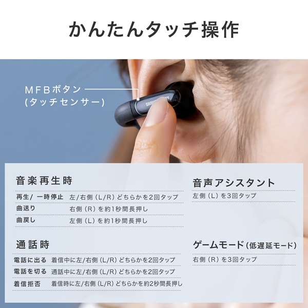 形状記憶アームと左右非対称設計で、長時間でも耳に優しくフィットします。