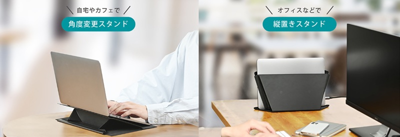 クツワさんは、2種類のPCスタンドに変形する新発想のノートPCケース