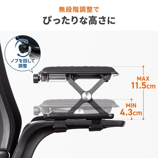 使う人の体格や好み、デスクの高さに合わせて好きな位置に調節できます。