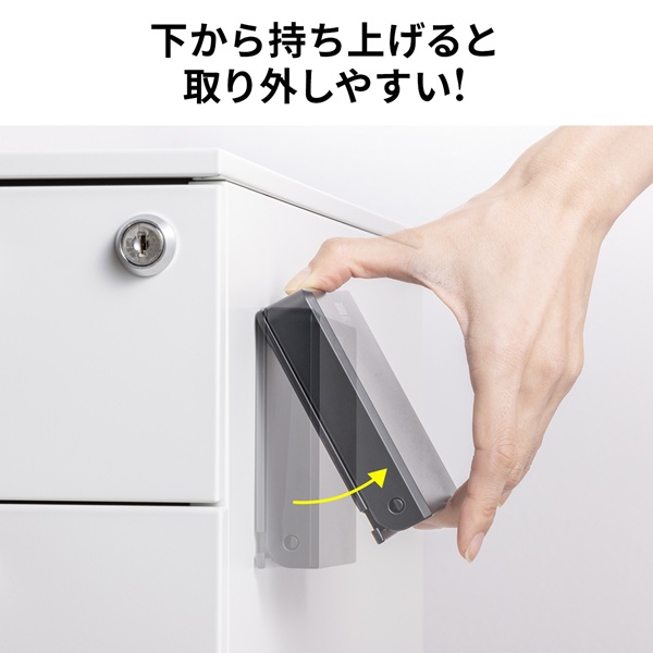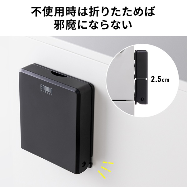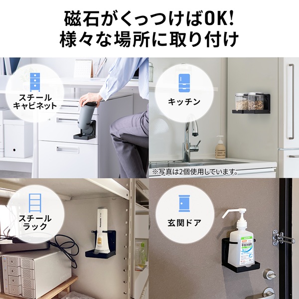 机の下やキャビネット、冷蔵庫横など、磁石がくっつく場所ならすぐ設置OK!