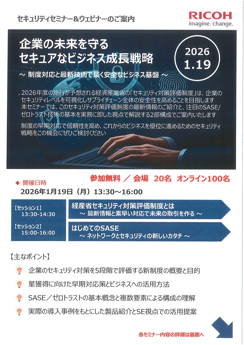 セキュリティセミナー&ウェビナー開催(1月19日)