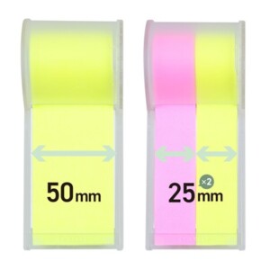 50mm幅ふせんを1巻、または25mm幅を2巻取り付けることができます。