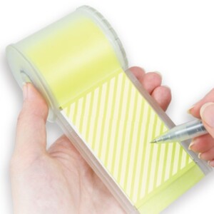 従来のロール付箋は、先に付箋を切ってから文章を書いていました。でもそのやり方だと文章が付箋におさまらず書き直しなんてこともあります。