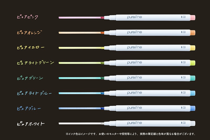 ピュアラインは2.4mmとスリムで、黒い用紙にも書ける(時間とともにきれいに発色)ラインマーカーです。