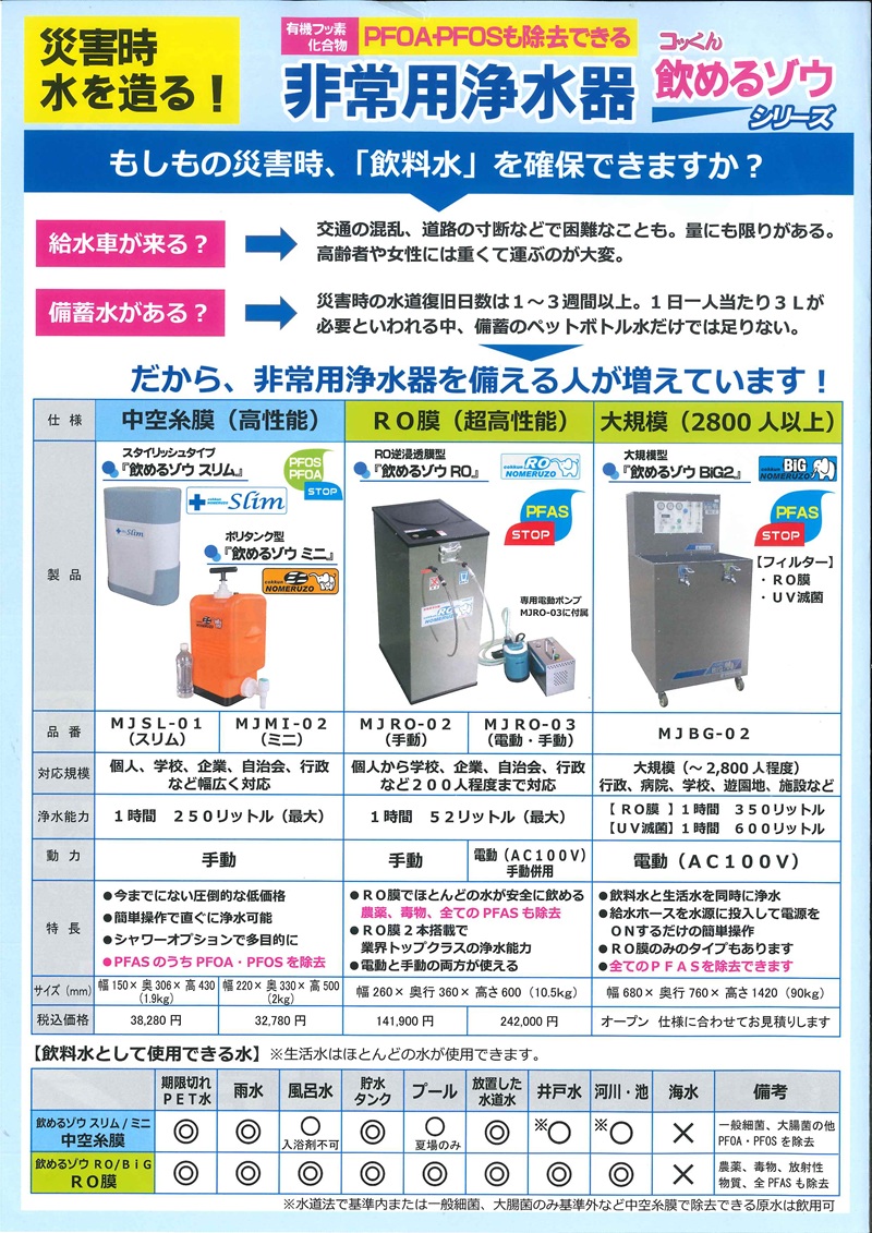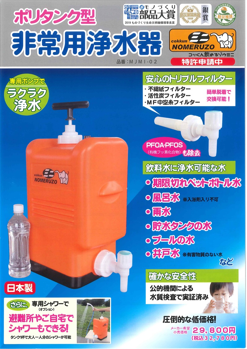 見本市に行ってきた④ 2026.02.17 Post Share Hatena Pocket RSS feedly Pin it 1/15(金)に行ってきた問屋さんの見本市レポート4回目です。 株式会社ミヤサカ工業さんの『コッくん 飲めるゾウ』。 汚れた水を飲める水に変えてくれる機械です。 自分もこの墨汁の入った黒い水を...ではなく、この黒い水が浄水されて透明になった水を飲みました。 普通に美味しかったです。 詳しくはこちらから ひろしです... 関連記事一覧 シヤチハタさん創業100周年 2025.01.14 真っ黒な... 2020.08.04 初孫です (#^^#) 2025.06.03 自主回収 2025.12.09 白と黒 2019.08.19 本年も大変お世話になりました!! 2021.12.28 パネリストします!! 2024.08.06 『CREATORE with PLUS NAGOYA』その2 2023.02.21