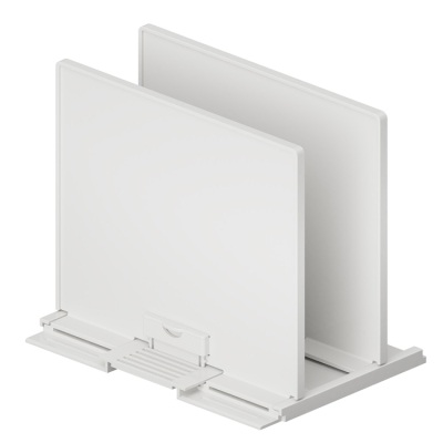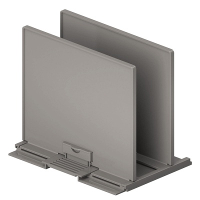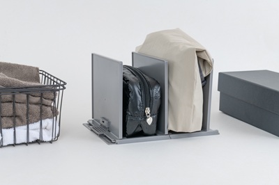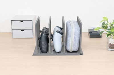 『キャパティ アジャストスタンド』は2枚のスライド板を調整して、収納物をピタッと立てられる仕切りスタンド。