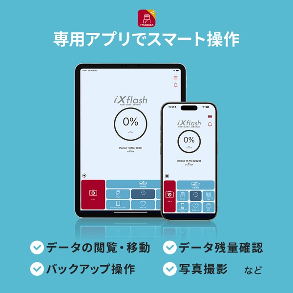 PCやクラウドは一切不要!ボタン一つで、スマホやタブレットの写真と動画をバックアップできます。