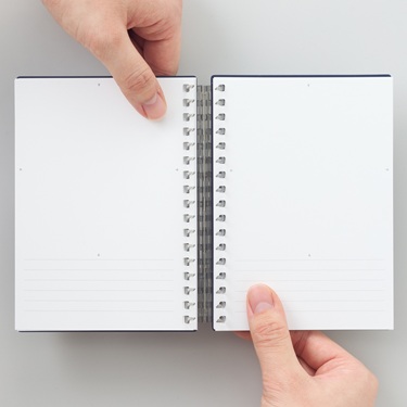 とじ具を開いてリーフの交換や追加ができます。