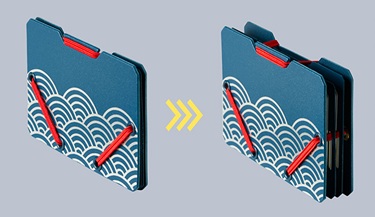 クレジットカードや交通系ICカード、ホテルのルームキー、さらには紙幣まで、必要なものをスマートにまとめられます。ゴムの伸縮で最適な厚みを維持できます。最大収納枚数:カード(0.76mm厚)約15枚